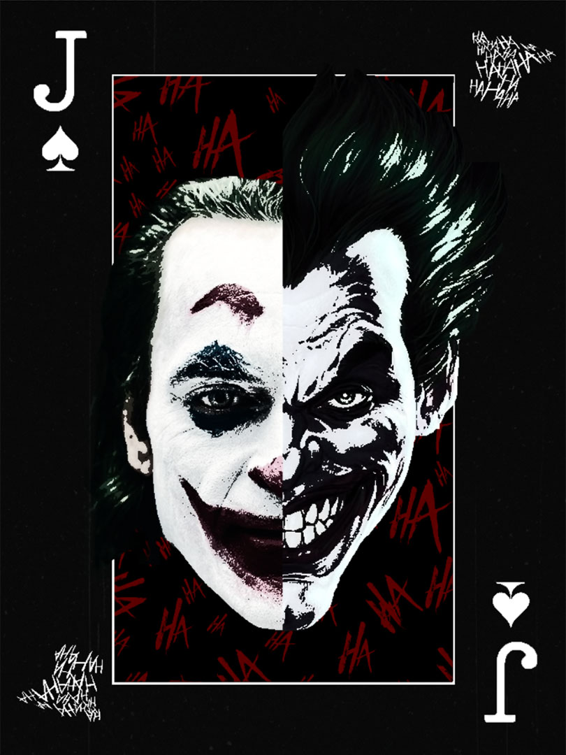 This piece reinterprets the Joker not as a single persona, but as a collision of two states — control and madness, silence and explosion.